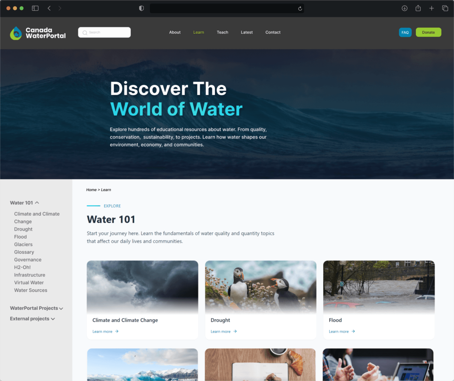 The Canada WaterPortal is a very complex, information-dense website, so when visitors need specific information, it can often be very overwhelming. For this project, I partnered with the WaterPortal to understand the why behind poor information architecture on the site.