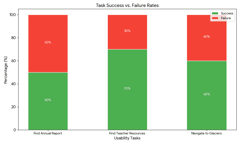 Measure the success rate of users locating high-value resources like annual reports and teacher materials.